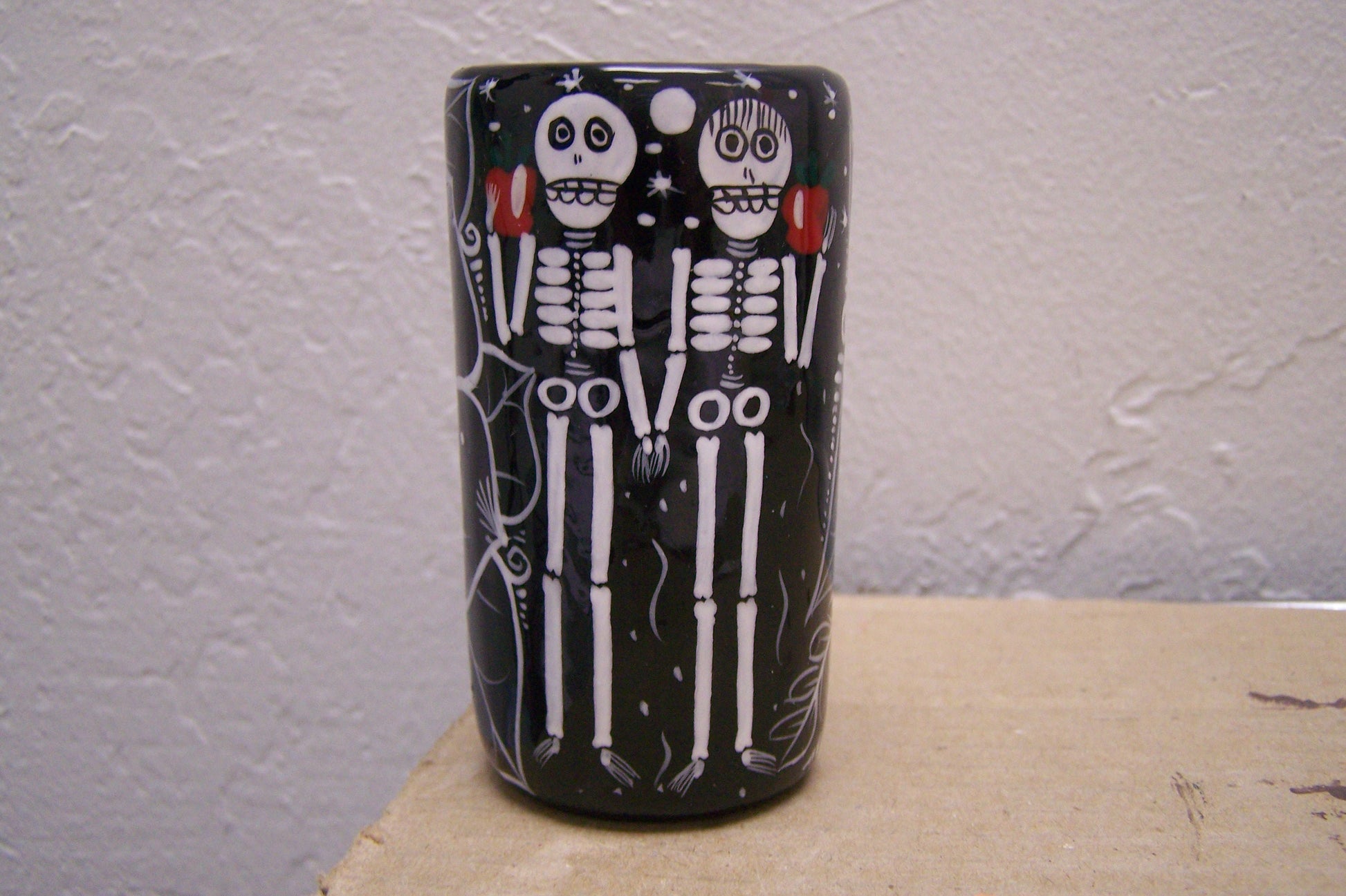 Ceramic Day of the Dead Shot Glass - Skeletons with Apples - Mexico